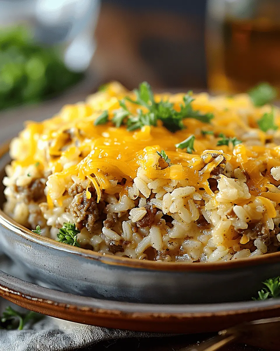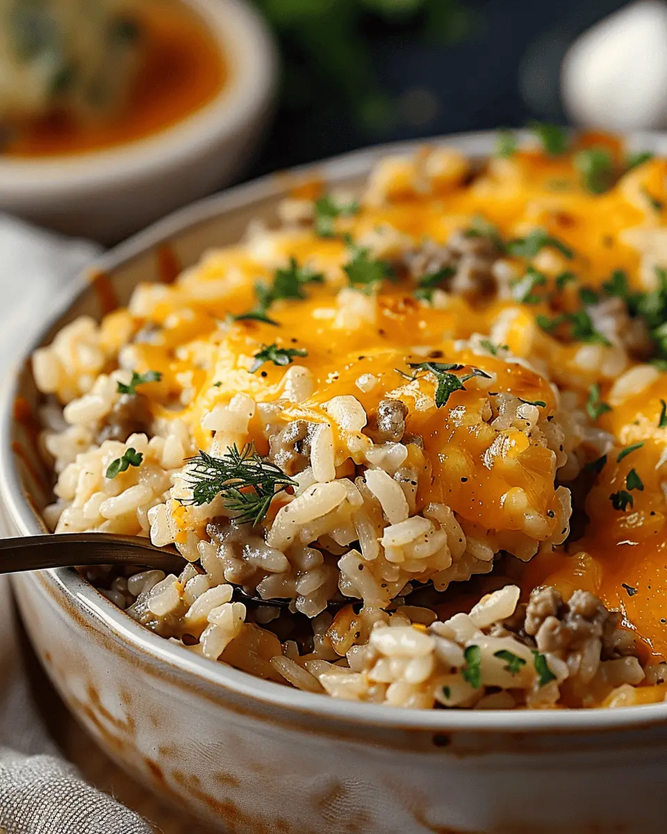 Cheesy Hamburger Rice Casserole is a comforting dish that combines savory flavors and creamy textures for a delightful meal.