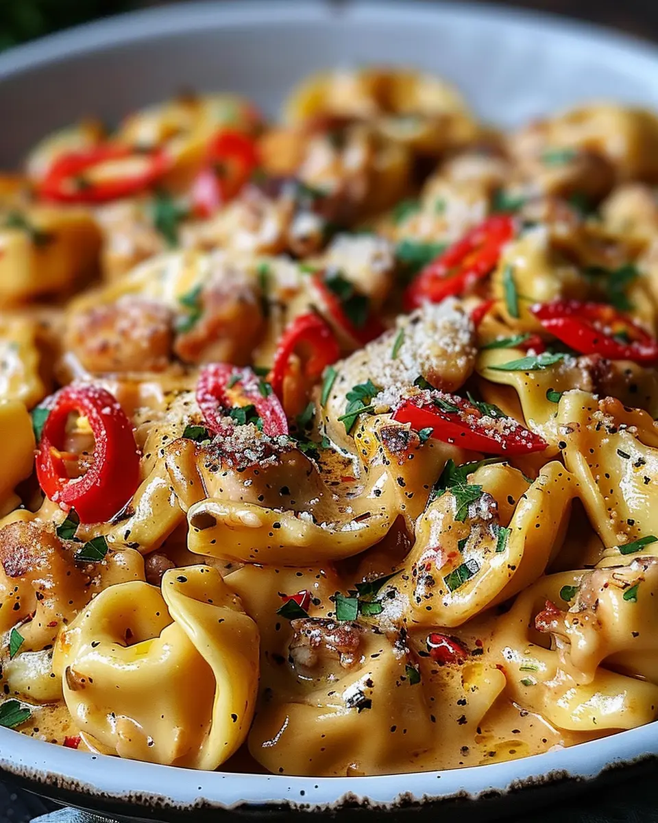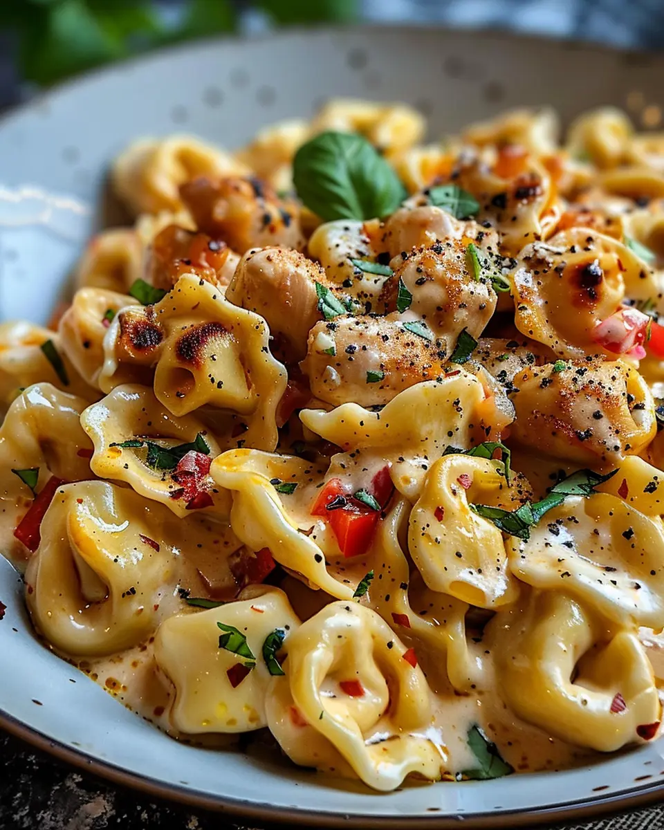 1. Add Tortellini: Carefully fold the cooked tortellini into the skillet with the sauce and chicken mixture.