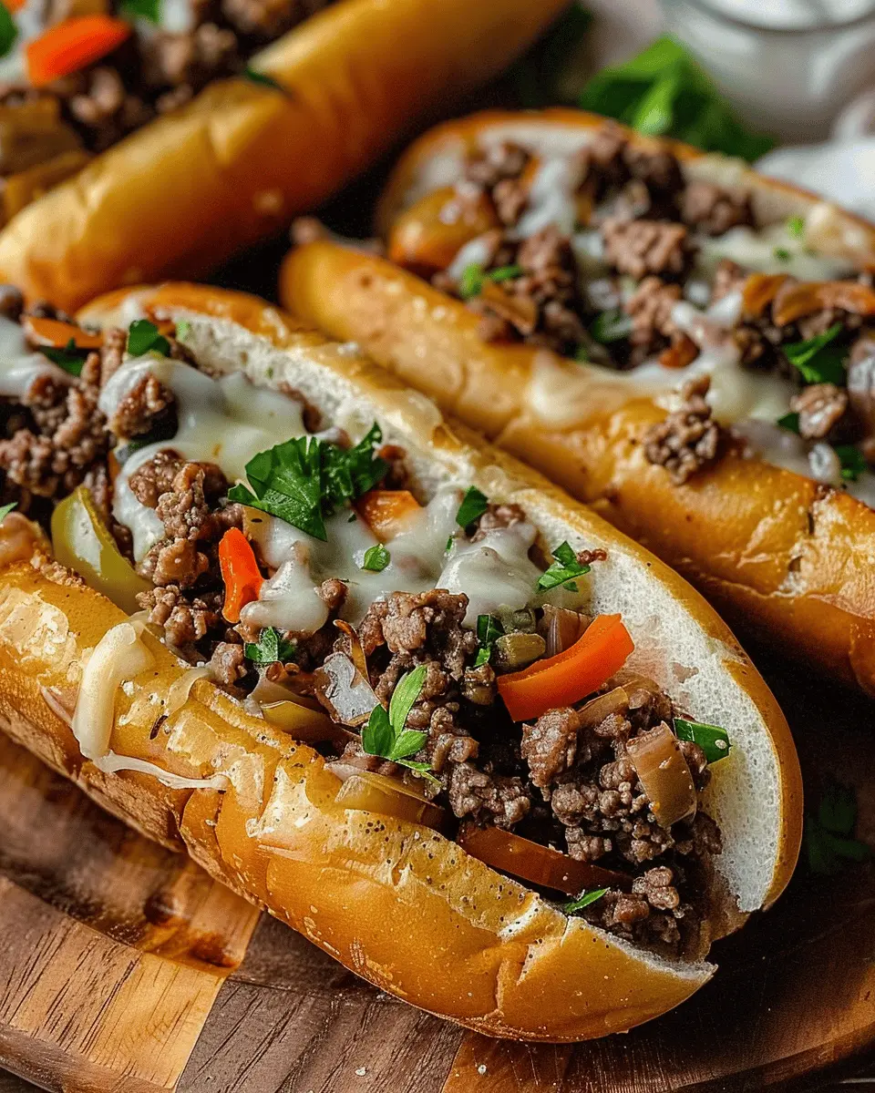 As we wrap up our delightful journey into the world of Ground Beef Philly Cheesesteaks, itโs clear that making these sandwiches at home transforms a simple meal into a flavor-packed adventure. Picture the tender, juicy beef mingling with sautรฉed veggies and melted cheese, all nestled in a soft hoagie roll. This homemade experience allows you to tailor each bite to your likingโadd some spicy peppers or a dash of your favorite sauce!
