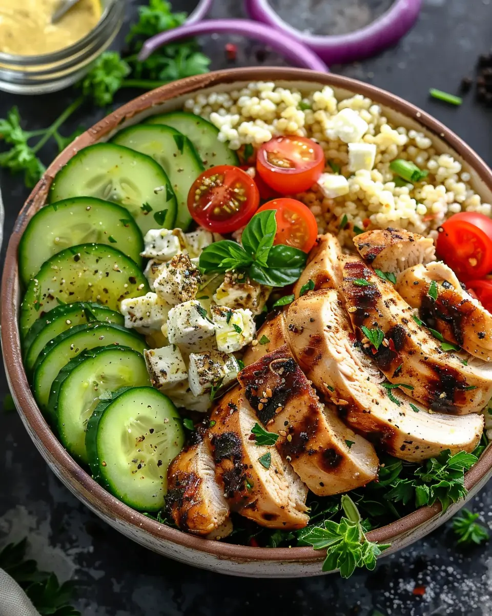 Don’t be afraid to get creative with the base! While traditional Mediterranean chicken bowls often use rice, consider alternatives like bulgur, quinoa, or even a blend of ancient grains. Switching up the grains effectively changes the bowl’s overall taste and texture. Youโll find that each grain has its unique flavor profile; for example, quinoa is nutty while bulgur adds an earthy touch. Plus, experimenting with grains can enhance the nutritional value of your meal, making it even more satisfying.