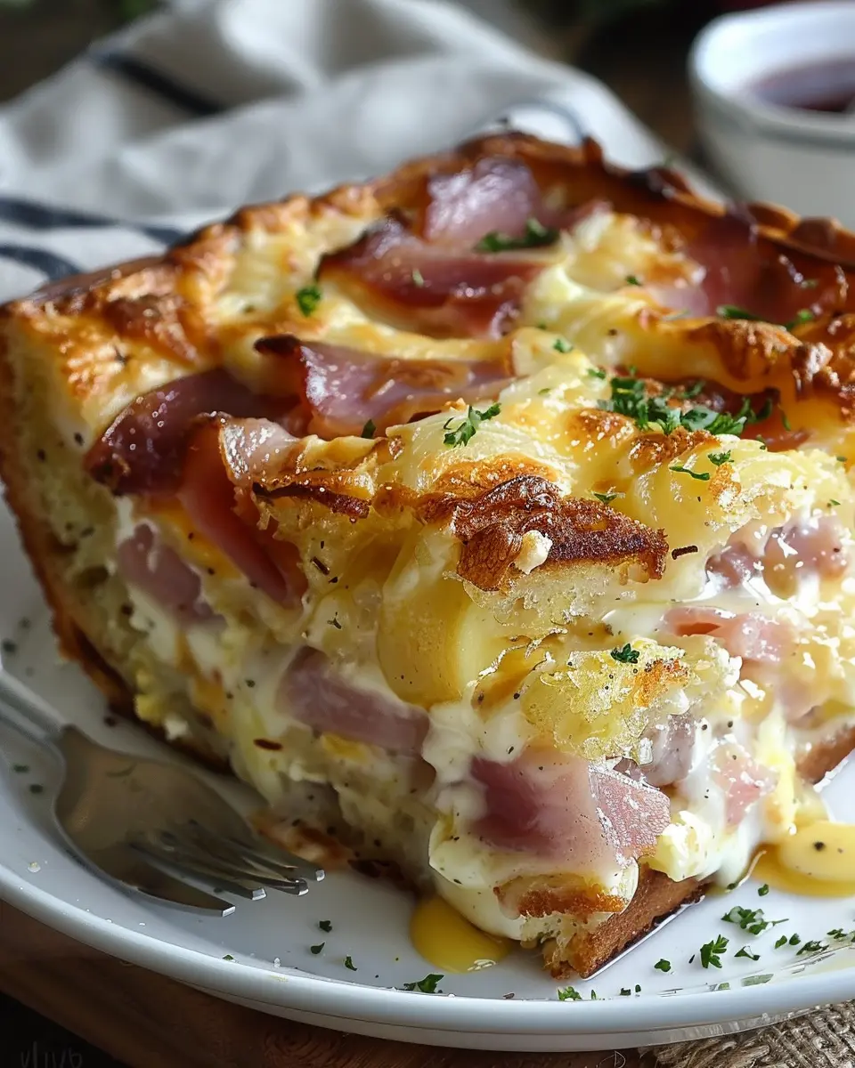 PrintMonte Cristo Breakfast Casserole: Easy Turkey Bacon Delight