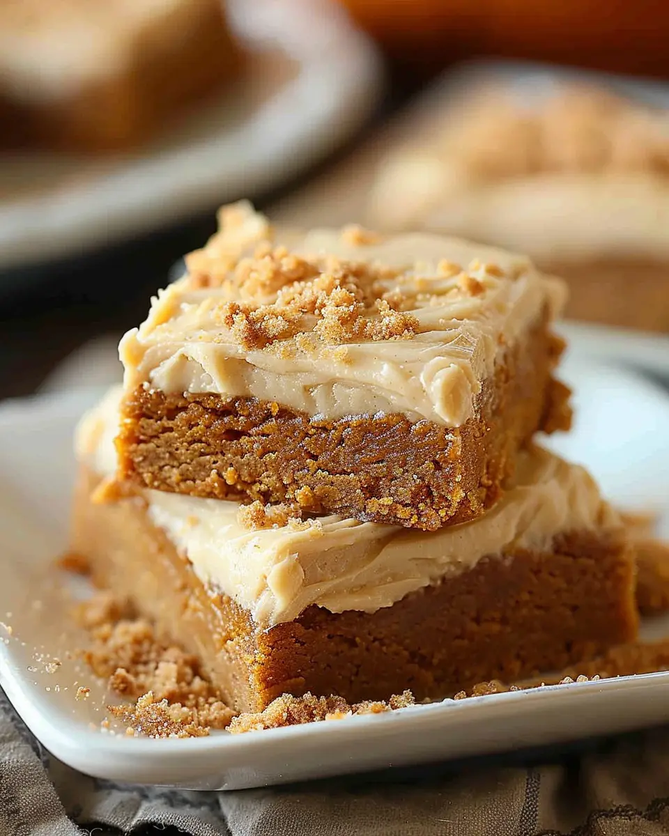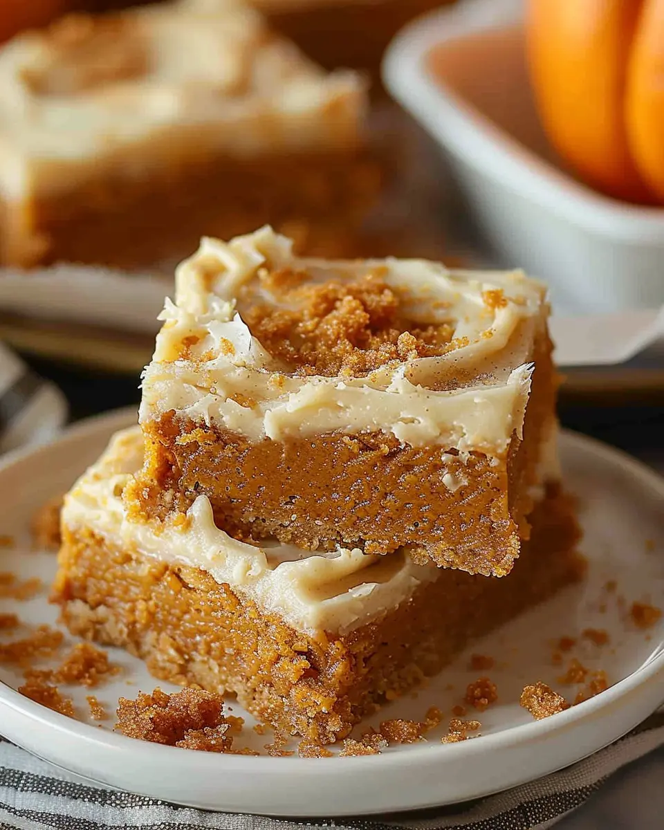 Keywords: Pumpkin Bars, Fall Dessert, Brown Sugar Frosting