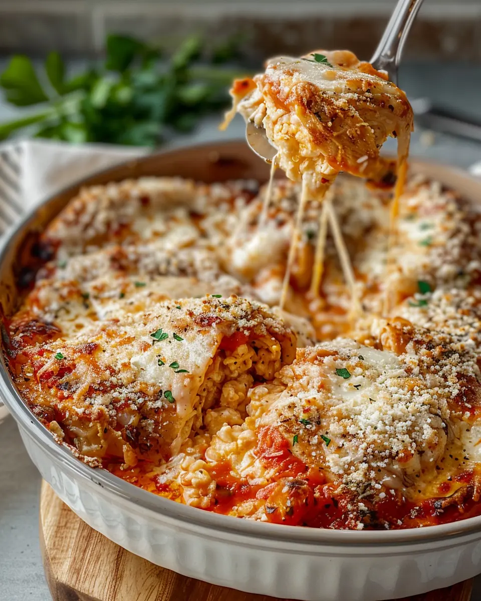 The layering is where the magic happens. Grab your baking dish, and start layering. Begin with a base of the remaining marinara sauce, then add the chicken-cottage cheese mixture on top. Next, sprinkle a generous layer of mozzarella cheese on top; it adds that gooey, cheesy goodness we all crave. Finish with a sprinkle of breadcrumbs and the remaining parmesan cheese for a nice texture.
